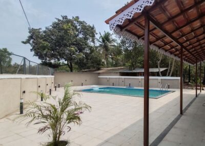 - At the heart of the property lies a grand private swimming pool, designed for both calm indulgence and playful escapes, perfectly positioned beside the villa’s entertainment room, giving every gathering its own sense of occasion.