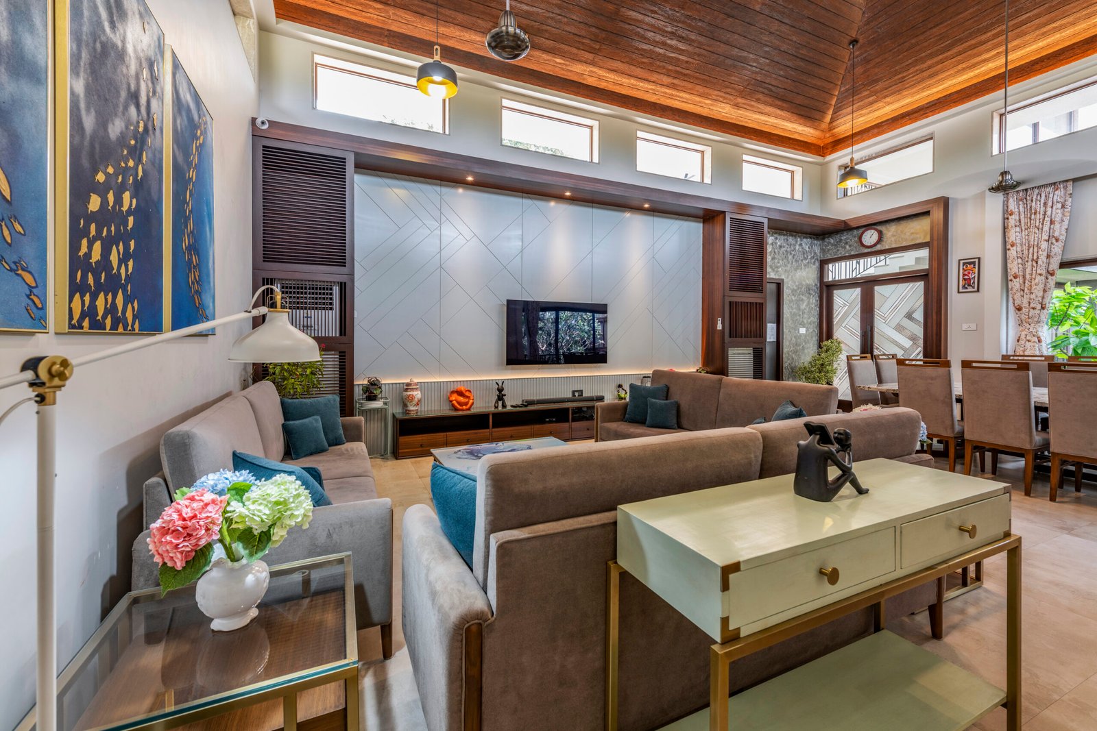 - The spacious lawn, which is the centrepiece of the house, can even be used to set up a small stage or tent for your celebrations.